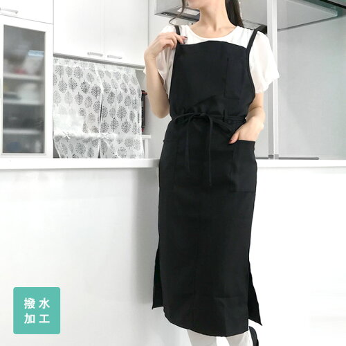 【メール便送料無料】ロングエプロン 黒 バッククロス エプロン ロング ワークエプロン カフェ 制服 おしゃれ かわいい 撥水加工 大人 上品 エステ サロン 仕事用 プレゼント ギフト クリスマス bap