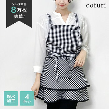 【メール便送料無料】ギンガムチェックフリルエプロン 黒 バッククロス エプロン チェック ショート ティアード かわいい おしゃれ レディース 撥水加工 大人 上品 エステ サロン 仕事用 プレゼント ギフト クリスマス bap
