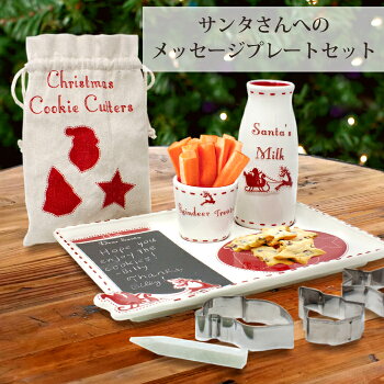 他のクリスマスツリーオーナメントはコチラ→ 商品名 サンタメッセージプレートセット 用途 サンタさんへメッセージとお礼のクッキー・ミルクを贈ろう 箱サイズ 42×23×8cm 内容 メッセージの書けるプレート、ミルクジャグ、トナカイトのおやつボウル、クッキー型×3個、型を入れる麻の収納袋、チョーク 箱サイズ 42×23×8cm コメント 子どもから大事な家族まで、みんなハッピークリスマス!世界中を飛び回るサンタさんへ、クッキーとミルクと暖かなメッセージで一息ついてもらいましょう。